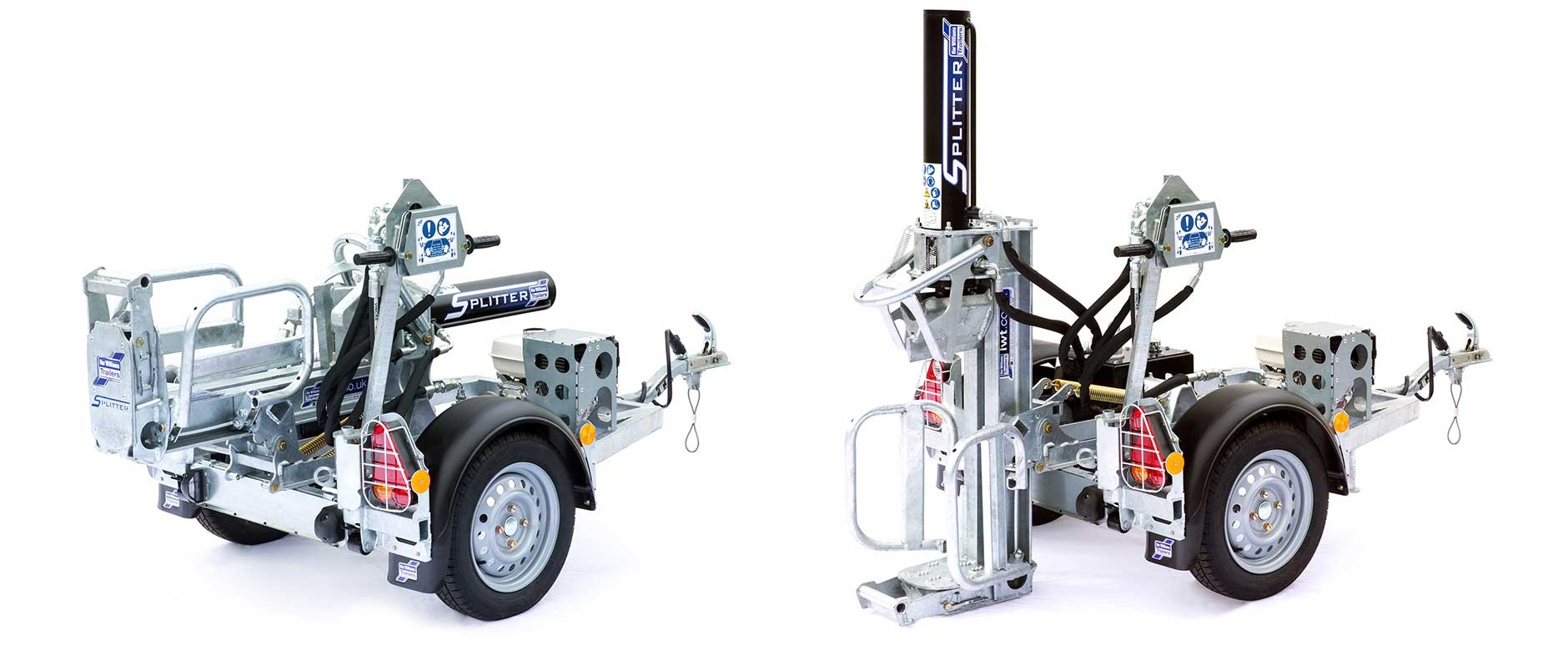 Cechy charakterystyczne obejmują potężny 25-tonowy siłownik hydrauliczny zasilany przez wbudowany silnik benzynowy, elastyczność w zakresie poziomego lub pionowego rozłupywania oraz możliwość rozłupywania kłód o długości do 600 mm.